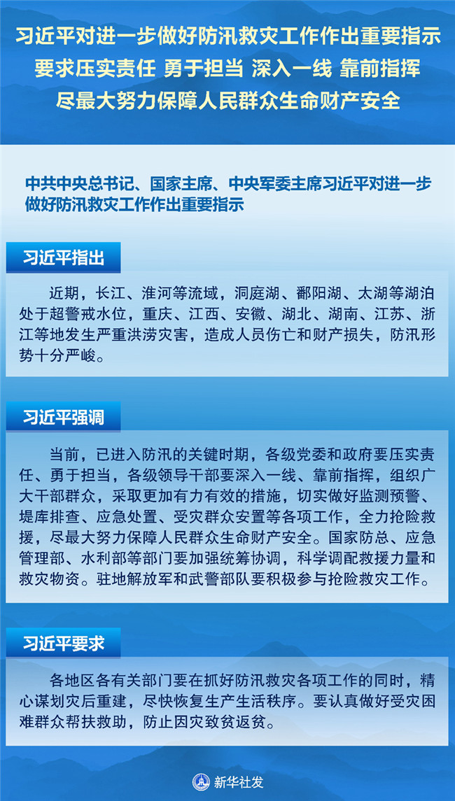中共中央總書記、國家主席、中央軍委主席習近平對進一步做好防汛救災工作作出重要指示。