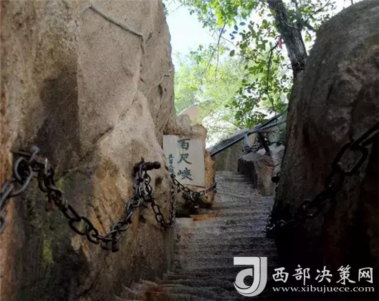 玉泉院出發(fā)直上到達(dá)華山門(步行登山路入口)。徒步經(jīng)五里關(guān)、莎蘿萍、毛女洞、青柯萍、回心石、千尺幛、百尺峽、群仙觀、老君犁溝后,到達(dá)北峰。全長約6公里,耗時3小時左右。