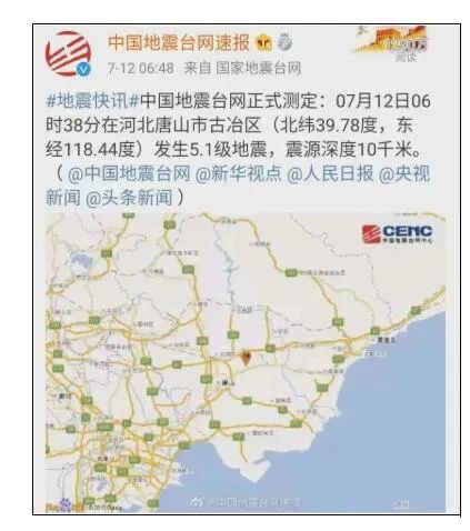 7月12日6時38分,河北唐山古冶區(qū)(北緯39.78度,東經(jīng)118.44度)發(fā)生5.1級地震,震源深度10公里,京津冀多地區(qū)震感明顯。同日,唐山市應急管理局回應稱,此次地震屬于1976年唐山大地震的余震。