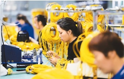 今年以來,安徽省淮北市加快培育戰(zhàn)新產(chǎn)業(yè)鏈,提升戰(zhàn)新產(chǎn)業(yè)整體競(jìng)爭(zhēng)力,使戰(zhàn)新產(chǎn)業(yè)成為經(jīng)濟(jì)增長(zhǎng)新引擎。圖為淮北市濉溪經(jīng)濟(jì)開發(fā)區(qū)內(nèi)的一家光通信技術(shù)企業(yè)的工人在生產(chǎn)車間加工光通信產(chǎn)品。萬(wàn)善朝攝(人民視覺)