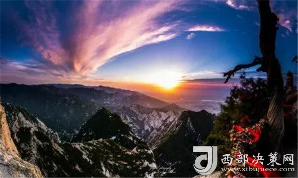 是時(shí),但見夜幕自東方悄然隱退,晨曦初露,漸漸霞光瑰麗,云源奔涌。瞬間,一輪火球噴薄而出,繼而光芒四射,氣象萬千,整個(gè)世界大放光明,游人身心為之一振。待云霧散盡,蒼松翠柏,則更加清麗悅目,美妙神奇。故而,游名山者必登華山,登華山者必觀日。華山日出亦被列為華山自然風(fēng)光中的重要景觀之一。