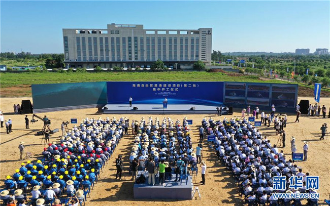 這是7月13日拍攝的海南自由貿易港建設項目(第二批)集中開工儀式現(xiàn)場(無人機照片)。 新華社記者 郭程 攝