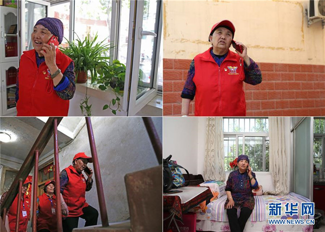 這是一張拼版照片。左上圖為:王蘭花在蘭花志愿服務(wù)站組織活動(dòng)間隙接聽(tīng)電話(huà)(6月23日攝);左下圖為:王蘭花在探望裕西社區(qū)老黨員的途中接聽(tīng)電話(huà)(6月23日攝);右上圖為:王蘭花在裕西社區(qū)巡邏間隙接聽(tīng)電話(huà)(6月23日攝);右下圖為:王蘭花下班回到家后接聽(tīng)電話(huà)(6月23日攝)。由于平日經(jīng)常收到群眾求助,接聽(tīng)電話(huà)成為王蘭花工作和生活中的常態(tài)。新華社記者 賈浩成 攝