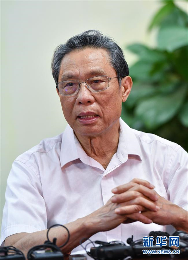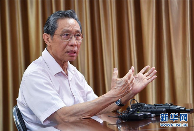 29日在廣州醫(yī)科大學(xué)附屬第一醫(yī)院,中國工程院院士、國家呼吸系統(tǒng)疾病臨床醫(yī)學(xué)研究中心主任、廣州醫(yī)科大學(xué)呼吸內(nèi)科教授鐘南山接受新華社采訪,談對香港疫情形勢的判斷,以及對防控疫情的建議。