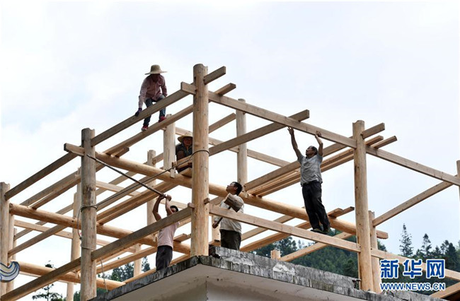 在烏英苗寨教學(xué)點(diǎn),工人在改造教學(xué)樓(6月13日攝)。 新華社記者 黃孝邦 攝