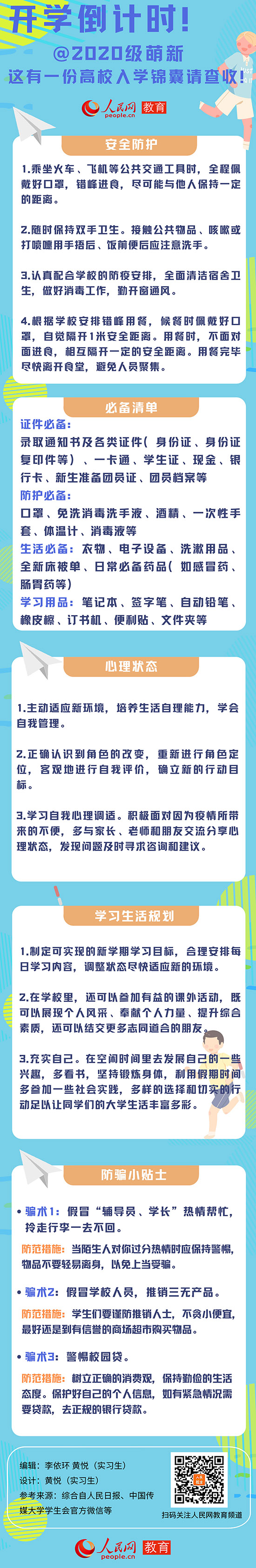 當(dāng)前,全國(guó)多地高校已經(jīng)陸續(xù)公布秋季開學(xué)時(shí)間,大學(xué)校園即將迎來“萌新”報(bào)到。人民網(wǎng)教育頻道特別梳理了一份入學(xué)錦囊,請(qǐng)即將步入新階段的學(xué)子們查收,元?dú)鉂M滿開啟大學(xué)校園生活。(李依環(huán) 實(shí)習(xí)生黃悅)