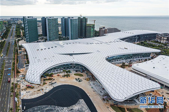 這是8月25日拍攝的位于??诘暮D蠂H會展中心二期項目(無人機拍攝)。新華社記者 蒲曉旭 攝