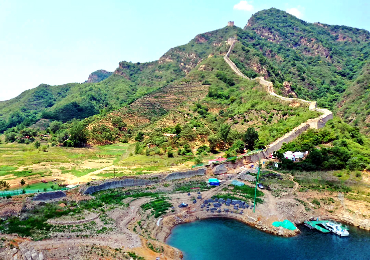 從空中俯瞰,長城順著逶迤的燕山山脈一直伸向水岸邊,猶如巨龍一頭扎進(jìn)水里。一座水庫的出現(xiàn),不經(jīng)意間營造了絕美的“長城水鄉(xiāng)”。