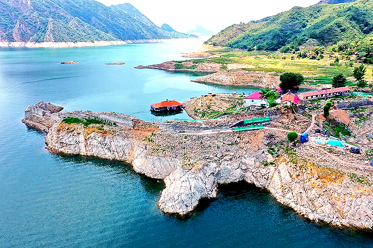 戚輝介紹,由于水庫位于燕山山脈沉降地帶東南構(gòu)造帶與華夏構(gòu)造帶的復(fù)合部位,地質(zhì)構(gòu)造復(fù)雜,四周的石灰?guī)r、白云巖及少部分頁巖巖體,由于流水侵蝕與褶皺斷裂作用,塑造出一系列奇峰怪石與陡崖懸壁,是北國極為罕見的山水風(fēng)光。