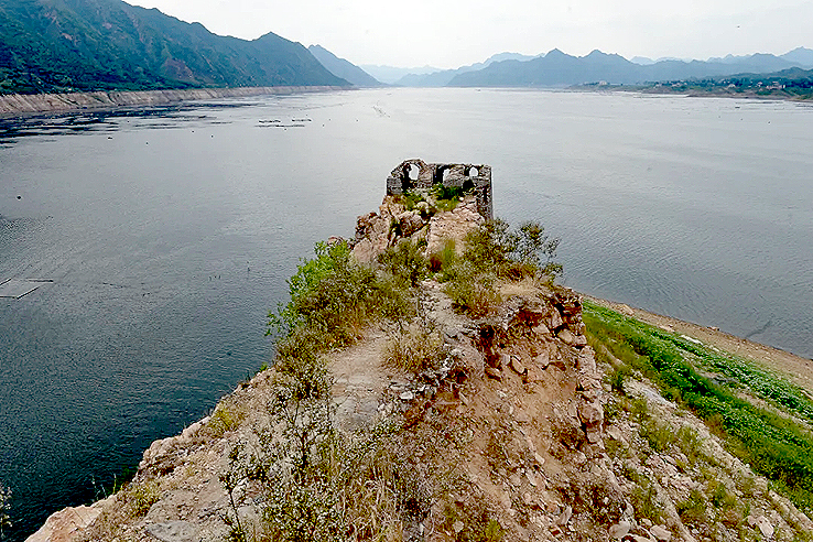 1975年至1981年,為了給天津供水,利用這里的山形地勢(shì),在灤河上游寬城、遷西、興隆三縣交界處,修建了潘家口水庫。引灤入津工程橫切長城,喜峰口、潘家口兩座雄關(guān)鑲?cè)胍惶侗滩?,從而形成萬里長城一處絕景——“水下長城”。