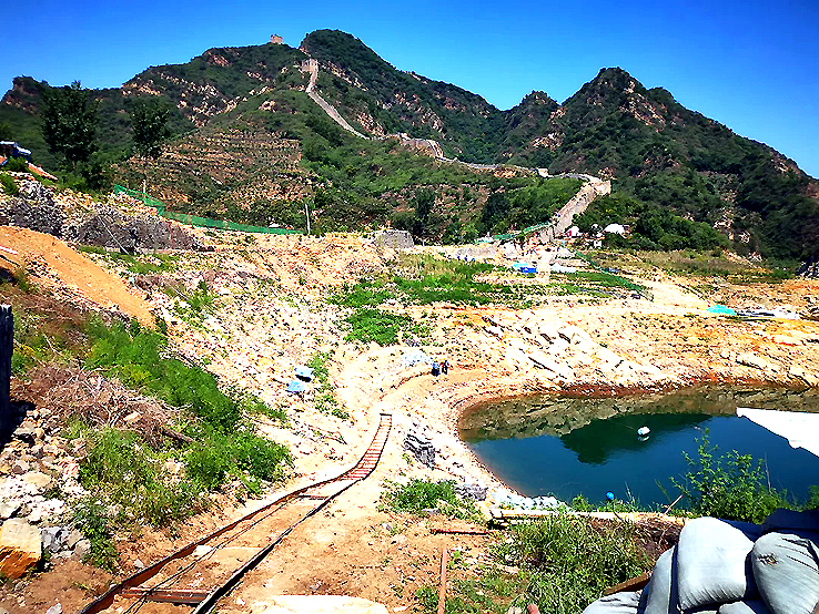 項(xiàng)目現(xiàn)場(chǎng)施工負(fù)責(zé)人表示,這段長城的修繕,其實(shí)不是修繕已經(jīng)完全淹入水下的部分,而是修繕露在水面之上的部分,或者說是在枯水季節(jié)能露在水面之上的部分。但因處于水庫旁,施工材料通過陸路、水路、山路才能到達(dá)施工現(xiàn)場(chǎng),修繕難度極大。