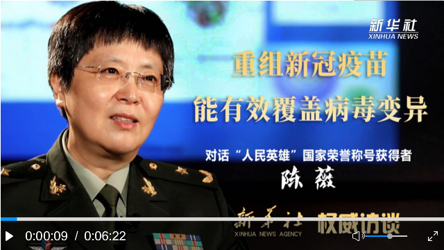 陳薇:我們是一個基因工程疫苗,就是找到最有用那一段基因,把它做成疫苗。從目前的數(shù)據(jù)分析來看,我們選的這一段基因產(chǎn)生變化的幾率非常低。截至目前,我們的重組新冠疫苗對已經(jīng)發(fā)生變異的新冠病毒能夠完全覆蓋。