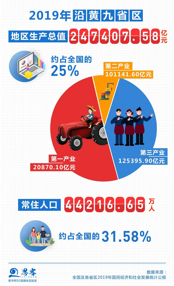 “平衡南北方,協(xié)同東中西”,黃河流域在我國經濟社會發(fā)展中地位十分重要。流經青海、四川、甘肅、寧夏、內蒙古、陜西、山西、河南、山東9個省區(qū)的黃河,流域內省份2019年底總人口4.42億,占全國的31.58%;地區(qū)生產總值24.74萬億元,約占全國25%。