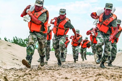 7月18日,江西九江柴桑區(qū)江洲鎮(zhèn)江新洲堤團(tuán)洲村突發(fā)險(xiǎn)情,陸軍第71集團(tuán)軍某旅工兵連黨員突擊隊(duì)迅速出動。新華社發(fā)