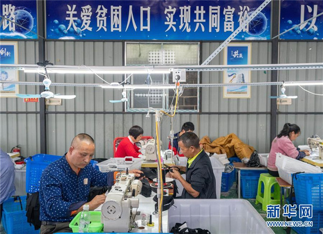 10月13日,在湖南省邵陽市城步縣殘疾人楊淑亭開辦的湖南七七科技股份有限公司生產(chǎn)車間里,工人們?cè)谥谱髅褡逄厣嘲?991年出生的苗族姑娘楊淑亭因車禍胸部以下高位截癱,通過不斷學(xué)習(xí)摸索,開辦網(wǎng)店并注冊(cè)了自己的企業(yè),與周邊貧困家庭簽訂合作協(xié)議,制作售賣具有民族特色的背包和仿真花卉,帶動(dòng)上千名貧困人員及59名殘疾人就業(yè)。