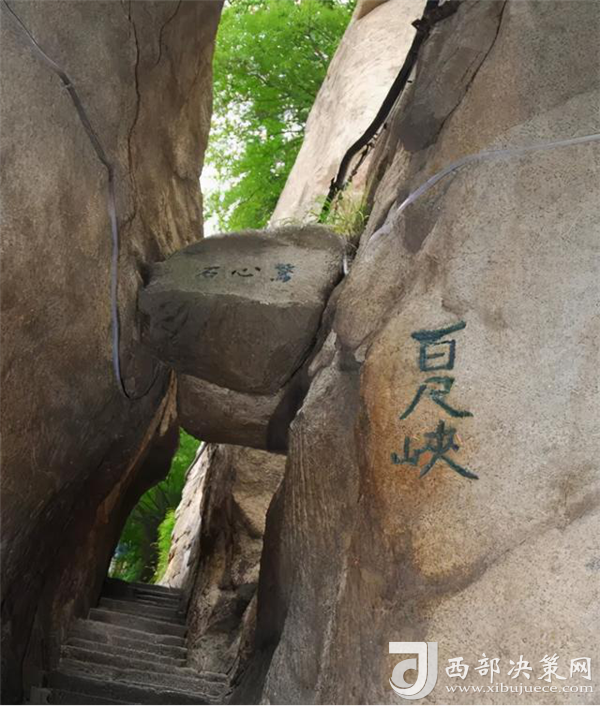 百尺峽,"幢去峽復來,天險不可瞬。雖云百尺峽,一尺一千仞。"過千尺幢向北折即到"百尺峽",它是登華山的第二個險境。