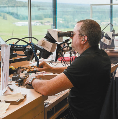 一名鐘表技師正在位于瑞士布拉蘇絲的愛彼鐘表博物館工作。 影像中國