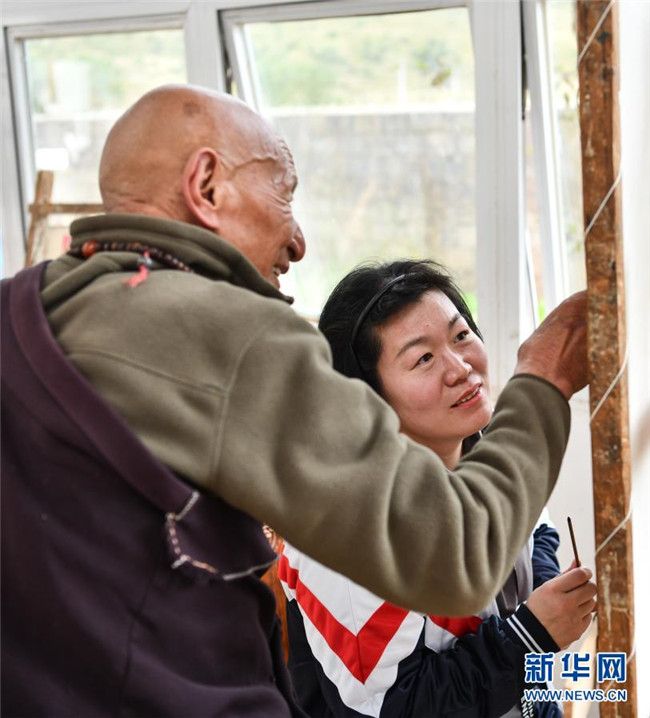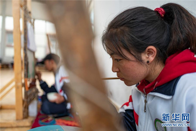 近年來,西藏大力發(fā)展現(xiàn)代職業(yè)教育,為打贏脫貧攻堅戰(zhàn)提供了技能保障。作為非物質(zhì)文化遺產(chǎn)傳承人,88歲的嘎瑪?shù)吕赵诓际锌ㄈ魠^(qū)嘎瑪鄉(xiāng)成立了民族手工藝培訓(xùn)基地,使民族手工藝從家族作坊式的生產(chǎn)向集中生產(chǎn)轉(zhuǎn)變。精湛的手工藝品逐漸走出了山溝,也帶動群眾走上了致富路。目前,嘎瑪?shù)吕展灿袑W(xué)員460名,其中112名曾是建檔立卡貧困戶,去年人均年收入達到20萬元左右。新華社記者 普布扎西 攝
