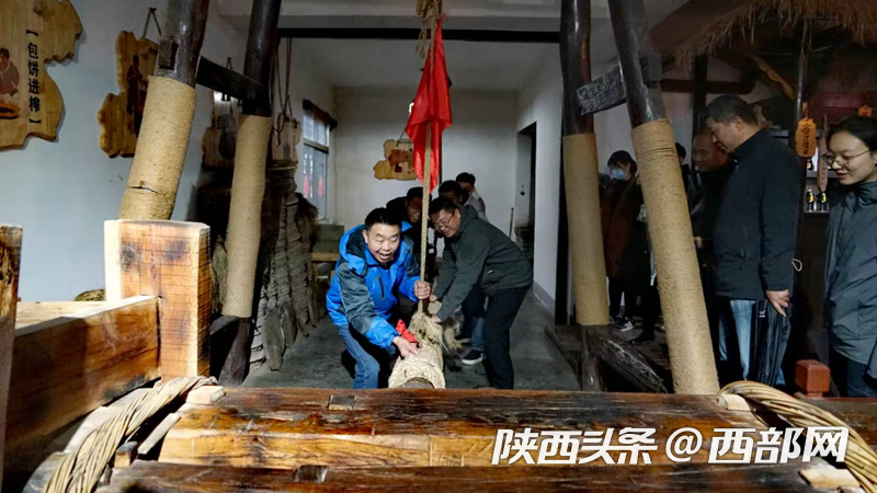“手要穩(wěn)啊、都攢勁啊、多出油啊、奔小康啊……”只要游客喜歡,在石泉縣中壩作坊小鎮(zhèn)當(dāng)賣油郎的石榮成總會(huì)邊喊著鏗鏘有力的號(hào)子,邊通過操作木榨機(jī)撞桿向游客和消費(fèi)者還原展示當(dāng)?shù)刈钤嫉牟俗颜ビ图妓嚕?ldquo;以讓大家對(duì)傳統(tǒng)文化有更多了解”。
