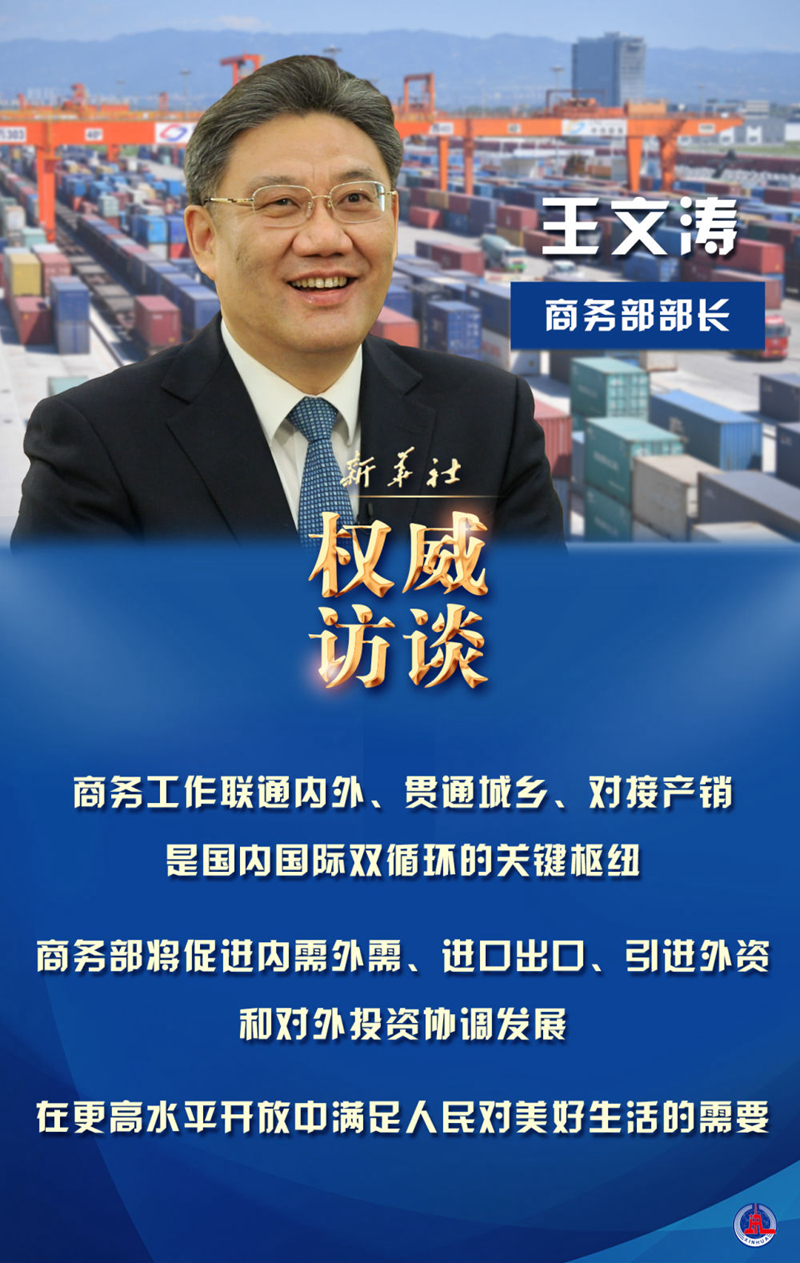 新的一年,促消費有何新招?如何繼續(xù)穩(wěn)住外貿(mào)外資基本盤?自貿(mào)區(qū)(港)建設有哪些新動作?自貿(mào)“朋友圈”如何構(gòu)建?新華社記者采訪了商務部部長王文濤。