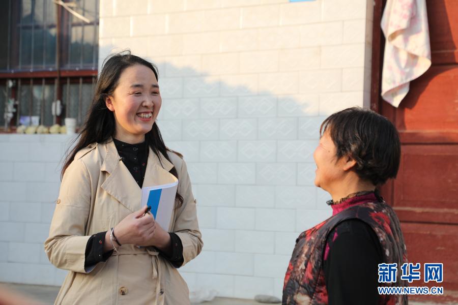 2月23日,在甘肅省隴南市徽縣水陽(yáng)鎮(zhèn)石灘村,全國(guó)人大代表梁倩娟(左)同村民石海萍交流?!⌒氯A社記者 張智敏 攝