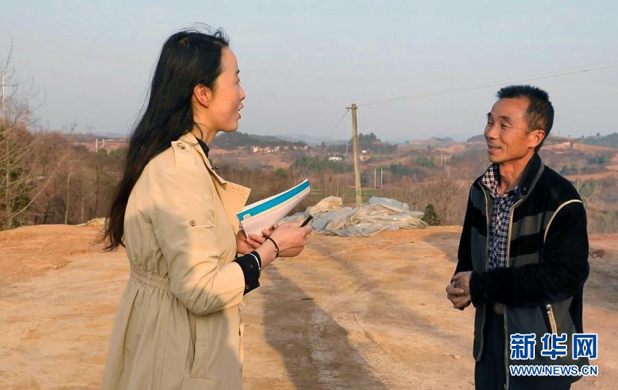 2月23日,在甘肅省隴南市徽縣水陽(yáng)鎮(zhèn)石灘村,全國(guó)人大代表梁倩娟(左)同村民茍明交流。 新華社記者 張智敏 攝