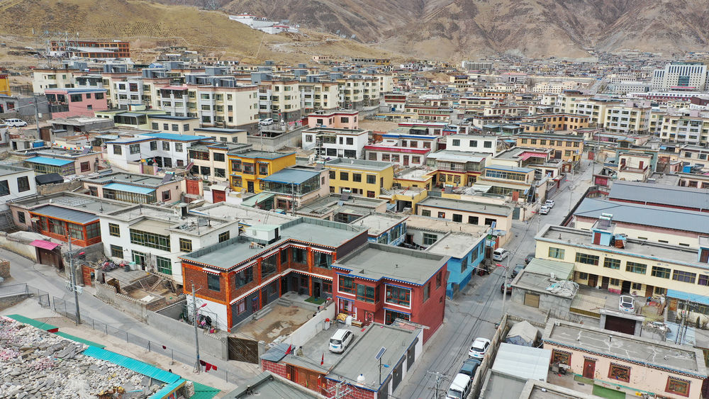 ↑ 圖為2021年3月10日拍攝的玉樹(shù)市一角(地震時(shí)為扎西科臨時(shí)安置點(diǎn))。