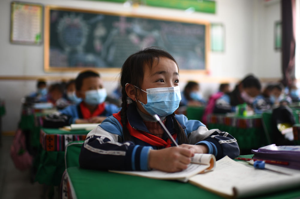 ↑ 在青海省玉樹(shù)藏族自治州八一孤兒學(xué)校,學(xué)生們?cè)谶M(jìn)行課間活動(dòng)(2020年4月3日攝)。 新華社記者 張龍 攝