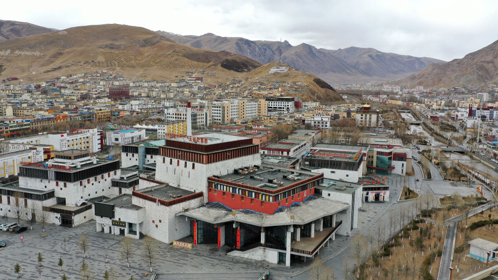 ↑ 圖為2021年3月10日拍攝的玉樹(shù)康巴藝術(shù)中心(玉樹(shù)地震前的結(jié)古鎮(zhèn)民族賓館)
