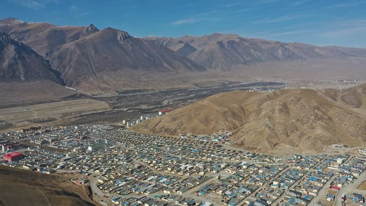 ↑ 圖為2021年3月10日拍攝的玉樹(shù)扎西大同村。