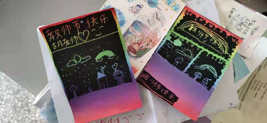 但胡永超喜歡這個職業(yè)。今年教師節(jié),有學生送他一張畫,畫滿紅色桃心,寫著:“我知道我們才相處幾天,可是我知道你是一個好老師。” 他教的四年級學生還曾自發(fā)湊錢,請家長去鎮(zhèn)里買蛋糕,給他過生日。