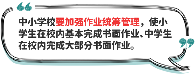 四、防止學(xué)業(yè)過重擠占睡眠時間。中小學(xué)校要提升課堂教學(xué)實效,加強(qiáng)作業(yè)統(tǒng)籌管理,嚴(yán)格按照有關(guān)規(guī)定要求,合理調(diào)控學(xué)生書面作業(yè)總量,指導(dǎo)學(xué)生充分利用自習(xí)課或課后服務(wù)時間,使小學(xué)生在校內(nèi)基本完成書面作業(yè)、中學(xué)生在校內(nèi)完成大部分書面作業(yè),避免學(xué)生回家后作業(yè)時間過長,擠占正常睡眠時間。校外培訓(xùn)機(jī)構(gòu)培訓(xùn)結(jié)束時間不得晚于20:30,不得以課前預(yù)習(xí)、課后鞏固、作業(yè)練習(xí)、微信群打卡等任何形式布置作業(yè)。