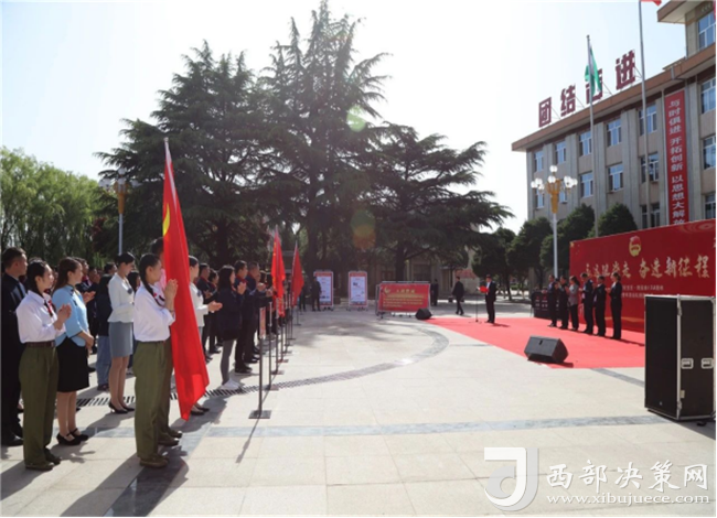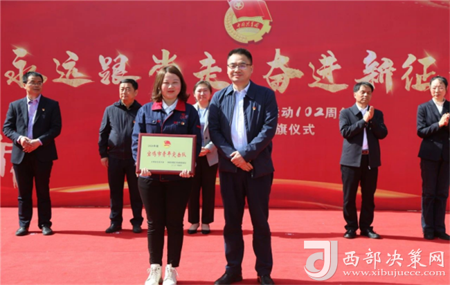西部決策網(wǎng)訊(韓宗憲)4月29日,西鳳集團(tuán)公司團(tuán)委在辦公樓前廣場舉行了“永遠(yuǎn)跟黨走 奮進(jìn)新征程”紀(jì)念五四運(yùn)動102周年暨青年突擊隊(duì)授旗儀式。共青團(tuán)寶雞市委書記高婷,西鳳集團(tuán)公司黨委副書記、總裁楊宏亮,黨委委員、股份公司副董事長、總經(jīng)理賈智勇,黨委副書記郭拴新,黨委委員、副總裁楊會軍,紀(jì)委書記、監(jiān)察專員帖樹紅,以及公司相關(guān)職能部門負(fù)責(zé)人,共青團(tuán)工作支持者,共青團(tuán)干部和團(tuán)員青年代表共200多人參加了儀式,集團(tuán)公司工會主席陳軍紅主持儀式。