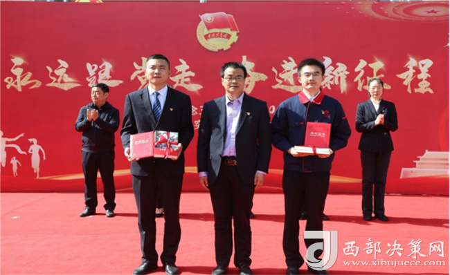 集團(tuán)公司副總裁楊會軍為寶雞市青年突擊手牛力,優(yōu)秀共青團(tuán)干部趙騰頒獎