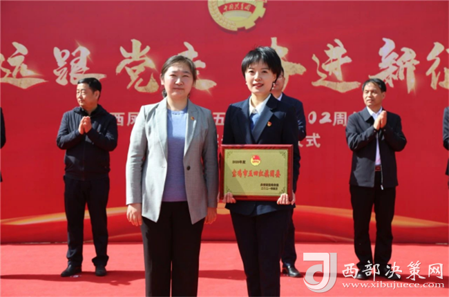 共青團(tuán)寶雞市委書記高婷為2020年度五四紅旗團(tuán)委代表朱小倩頒獎