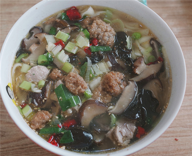 一碗18元的香菇面,里頭有香菇、蝦米、木耳、里脊肉片、汆肉丸子和油炸丸子等原料,再撒上蔥蒜和辣椒,香氣四溢。“以前還要放排骨和酥肉呢。”香菇面店的老板李瑞強(qiáng)說(shuō),父親1988年開(kāi)始賣香菇面,父親去世后,他在鎮(zhèn)上開(kāi)了店,希望能將這份味道長(zhǎng)長(zhǎng)久久傳承下去。
