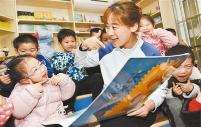 江蘇省南京市建鄴區(qū)一家幼兒園內(nèi),老師為孩子們閱讀繪本故事。方東旭攝(影像中國)