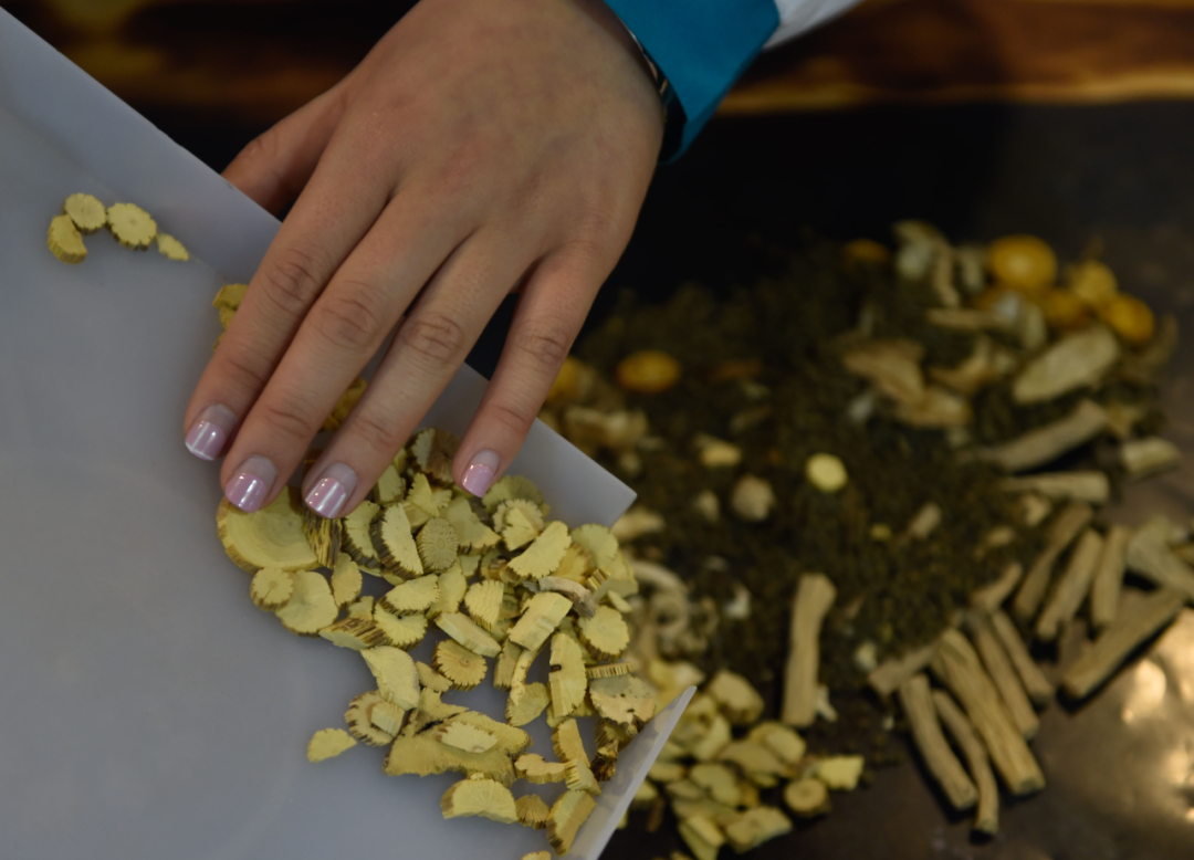 ▲圖為中醫(yī)藥專業(yè)的學生在調(diào)配中藥。新華社照片