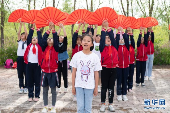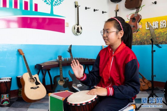 在黑龍江省安達(dá)市任民鎮(zhèn)中心小學(xué)校園內(nèi),“村里的孩兒”音樂(lè)班在排練節(jié)目(5月25日攝)。新華社記者 謝劍飛 攝