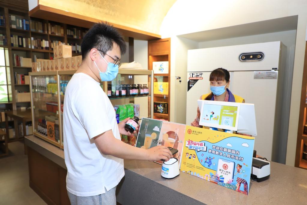圖為圓明園景區(qū)內(nèi),一名顧客正使用數(shù)字人民幣購買商品。受訪者供圖