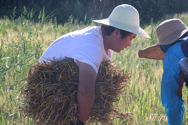 由于資金有限、環(huán)境限制,最窘迫的時(shí)候,志愿者們曾經(jīng)十幾個(gè)人擠在當(dāng)?shù)鼐用窦业姆块g打地鋪,半夜有的時(shí)候熱得不行,很多人還會(huì)偷偷從房間里跑出來,直接在院子里露天睡,曾經(jīng)遇到合作方突然將草方格和麥草垛以高于市場價(jià)的價(jià)格出售給他們,劉智卓就和同學(xué)們選擇自己制作草方格,沒有治沙工具,他們就挨家挨戶去向鄉(xiāng)親們借。