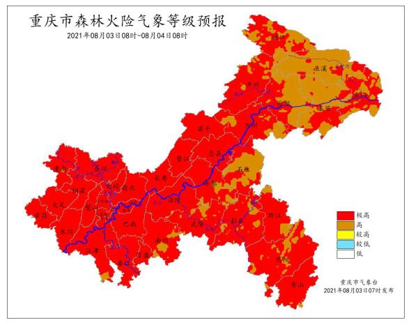 預(yù)計未來24小時,重慶市大部地區(qū)森林火險氣象條件等級極高,須嚴(yán)密防范,林區(qū)須加強(qiáng)火源管理。