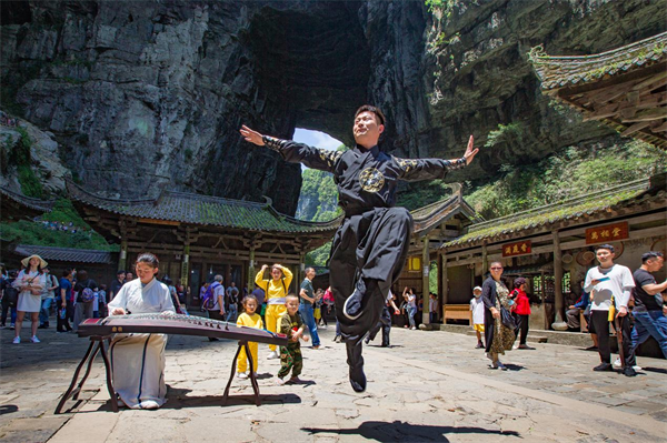 在《尋夢仙山》劇情中,還特別融入了武隆最具特色的仙女山、天生三橋、龍水峽地縫等景點。整個行程既有景區(qū)景點場景營造,也有實景特效演出。特別是武隆諸多電影取景拍攝地,讓玩家進入身臨其境的電影主角體驗。在自然風光中進行角色無縫切換,在游玩中完成精彩的游戲挑戰(zhàn),為游客帶來不一樣的旅行體驗。