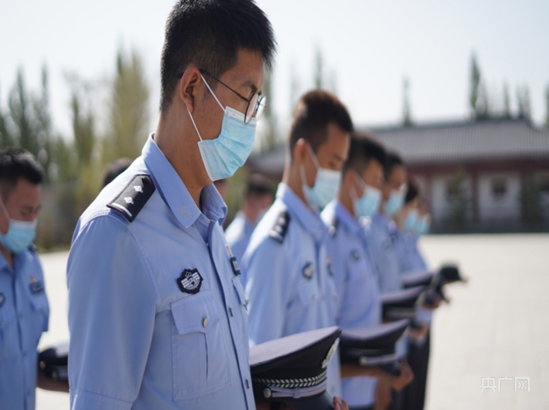 民警們面向紀(jì)念碑默哀。 邱柯兵 攝 央廣網(wǎng)發(fā)