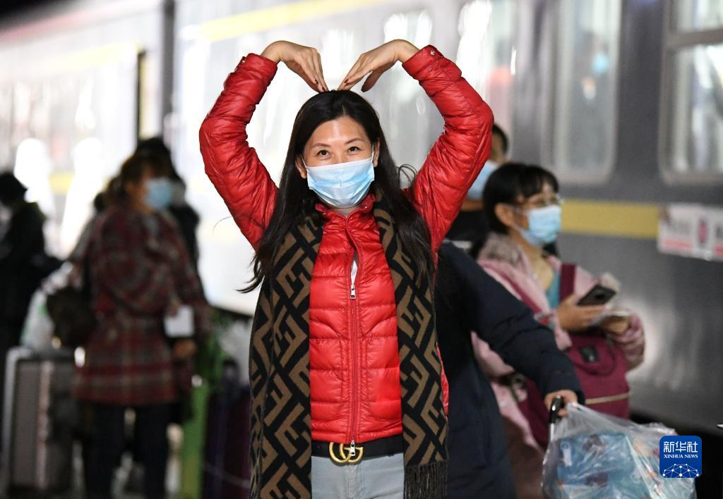 10月30日,載有額濟納旗滯留游客的列車,抵達鄂爾多斯火車站。新華社發(fā)