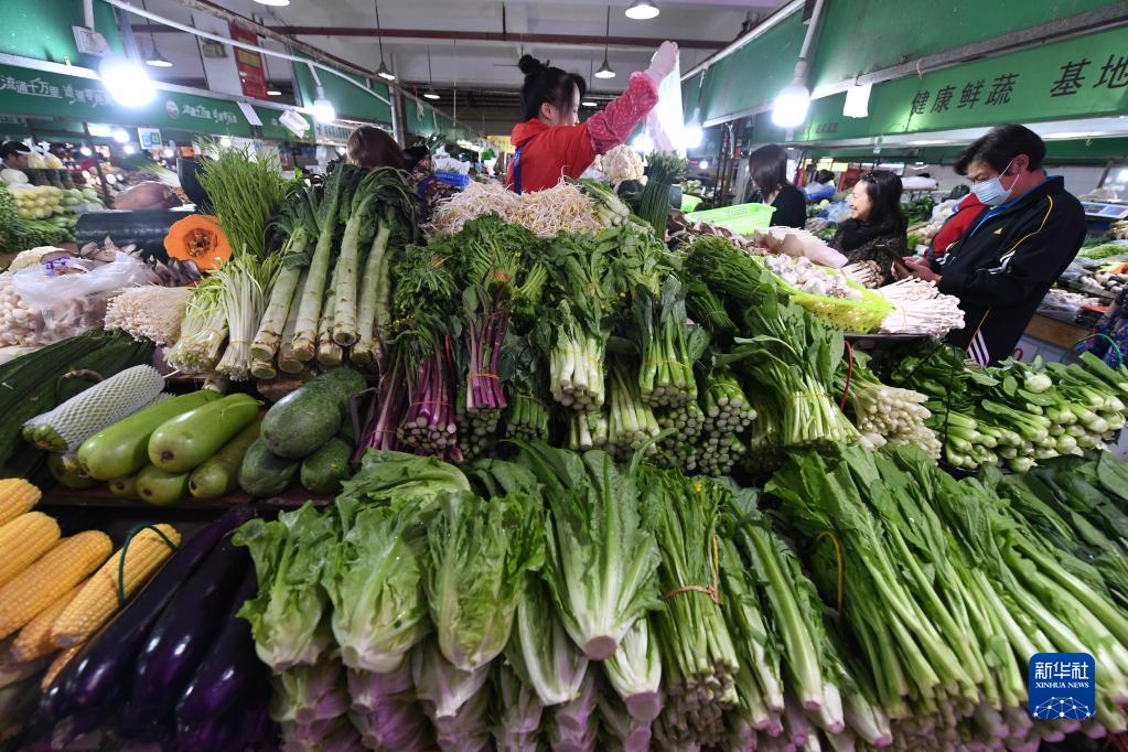 11月10日,在廣西南寧市濱湖路一家農(nóng)貿(mào)市場,人們在選購蔬菜。新華社記者 陸波岸 攝