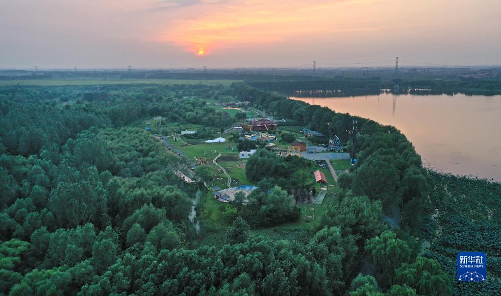 這是遼寧省鐵嶺蓮花湖國家濕地公園(8月23日攝,無人機照片)。 新華社記者 姚劍鋒 攝