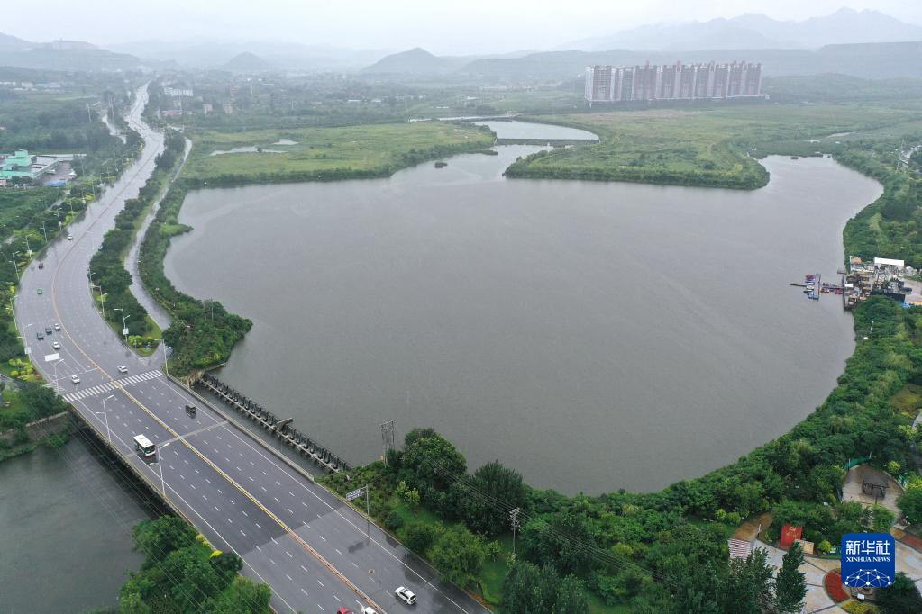 這是遼寧省鞍山市高新區(qū)火炬廣場前的南沙河水域(8月20日攝,無人機照片)?!⌒氯A社記者 姚劍鋒 攝
