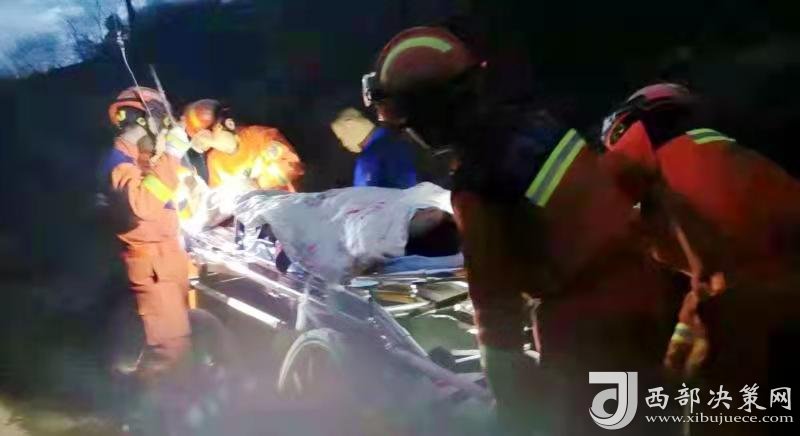 凌晨六點,山里依舊是漆黑一片,山風冷颼颼,醫(yī)護人員和消防救援人員輪換著抬著擔架在高低不平、狹窄崎嶇的山路上深一腳淺一腳,舉步維艱地前行,累的氣喘吁吁。雜草掩蓋了道路,讓人分不清是路還是溝,原本20分鐘的路程,一行人卻走了1小時。行進的途中,患者的每一聲呻吟都牽動著大家的心。早上7點20分,在大家的共同努力下,安全將患者送到120急救車上。