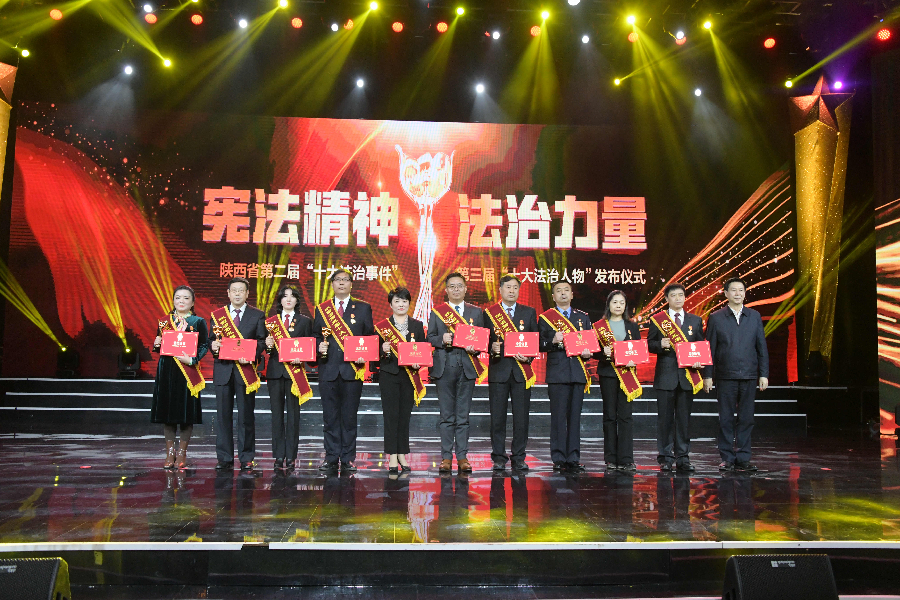 發(fā)布儀式現(xiàn)場(chǎng)播放了“十大法治事件”“十大法治人物”及提名獎(jiǎng)的先進(jìn)事跡短片,揭曉了陜西省第二屆“十大法治事件”、第三屆“十大法治人物”及提名獎(jiǎng)獲得者。“全國(guó)首創(chuàng)黨委(黨組)書(shū)記點(diǎn)評(píng)法治工作機(jī)制切實(shí)夯實(shí)‘一把手’履行法治建設(shè)責(zé)任”等10個(gè)事件被評(píng)為第二屆“十大法治事件”、“陜西出臺(tái)自由貿(mào)易試驗(yàn)區(qū)條例助推自貿(mào)區(qū)高質(zhì)量發(fā)展”等10個(gè)事件被評(píng)為第二屆“十大法治事件”提名獎(jiǎng),西安交通大學(xué)法學(xué)院二級(jí)教授馬治國(guó)等10名同志被評(píng)為第三屆“十大法治人物”、咸陽(yáng)市中級(jí)人民法院速裁中心主任李春麗等10名同志被評(píng)為第三屆“十大法治人物”提名獎(jiǎng)。